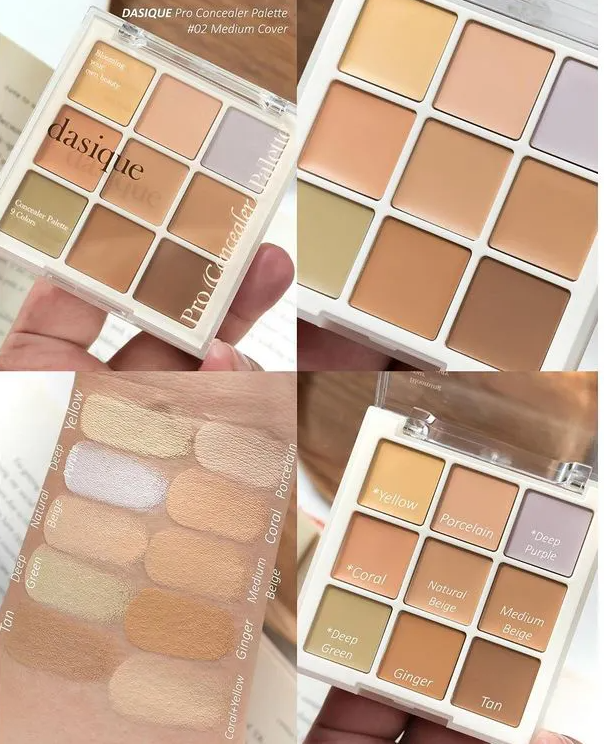 Bảng màu Dasique Concealer Palette 9 Colors có tới 9 ô màu kem che khuyết điểm khác nhau, bạn có thể sử dụng để che phủ mọi vấn đề về da từ quầng thâm mắt, thâm mụn hay vùng da đỏ