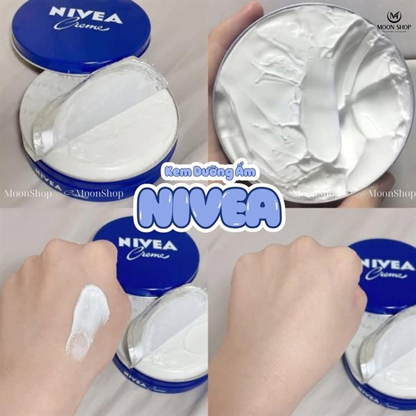 Kem dưỡng ẩm Nivea Creme là sản phẩm lành tính có chứa hoạt chất Moisturiser có khả năng làm ẩm và không gây kích ứng da. Với chiết xuất từ sữa, bổ sung hoạt chất Eucerit giúp bảo vệ và nuôi dưỡng làn da mềm mại, mịn màng, đặc biệt cho da khô ráp. Sản phẩm thích hợp mọi loại da, ngay cả với phụ nữ mang thai và trẻ nhỏ.