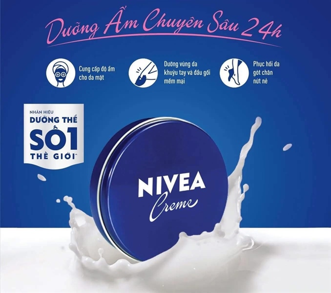 Không cầu kỳ, không mùi gắt, Nivea Creme là lựa chọn dưỡng ẩm cơ bản được tin dùng từ nhiều thế hệ. Sản phẩm có thể sử dụng cho mặt, tay, chân và cơ thể, giúp làm mềm và cấp ẩm cho vùng da bị khô nứt nhẹ. Với kết cấu kem đặc, dễ tán đều và thấm dần vào da, đây là giải pháp tiện lợi để mang theo trong túi hoặc dùng tại nhà.