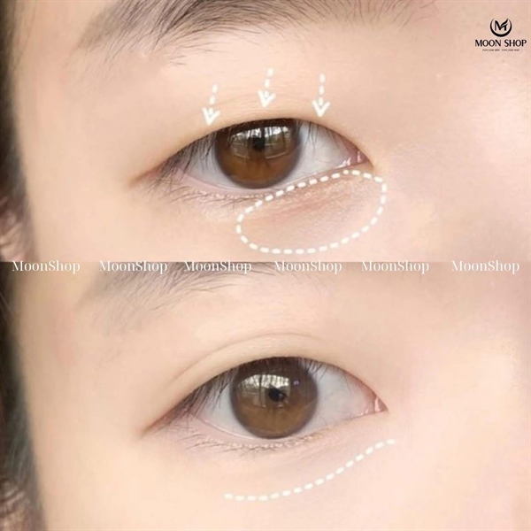 Sau bước sử dụng tinh chất, lấy 1 lượng kem vừa đủ thoa đều lên vùng da quanh mắt và massage nhẹ nhàng theo chiều kết cấu quanh vùng da mắt, dùng ngón áp út nhấn nhẹ nhàng quanh vùng da để cho dưỡng chất được hấp thụ tối đa.