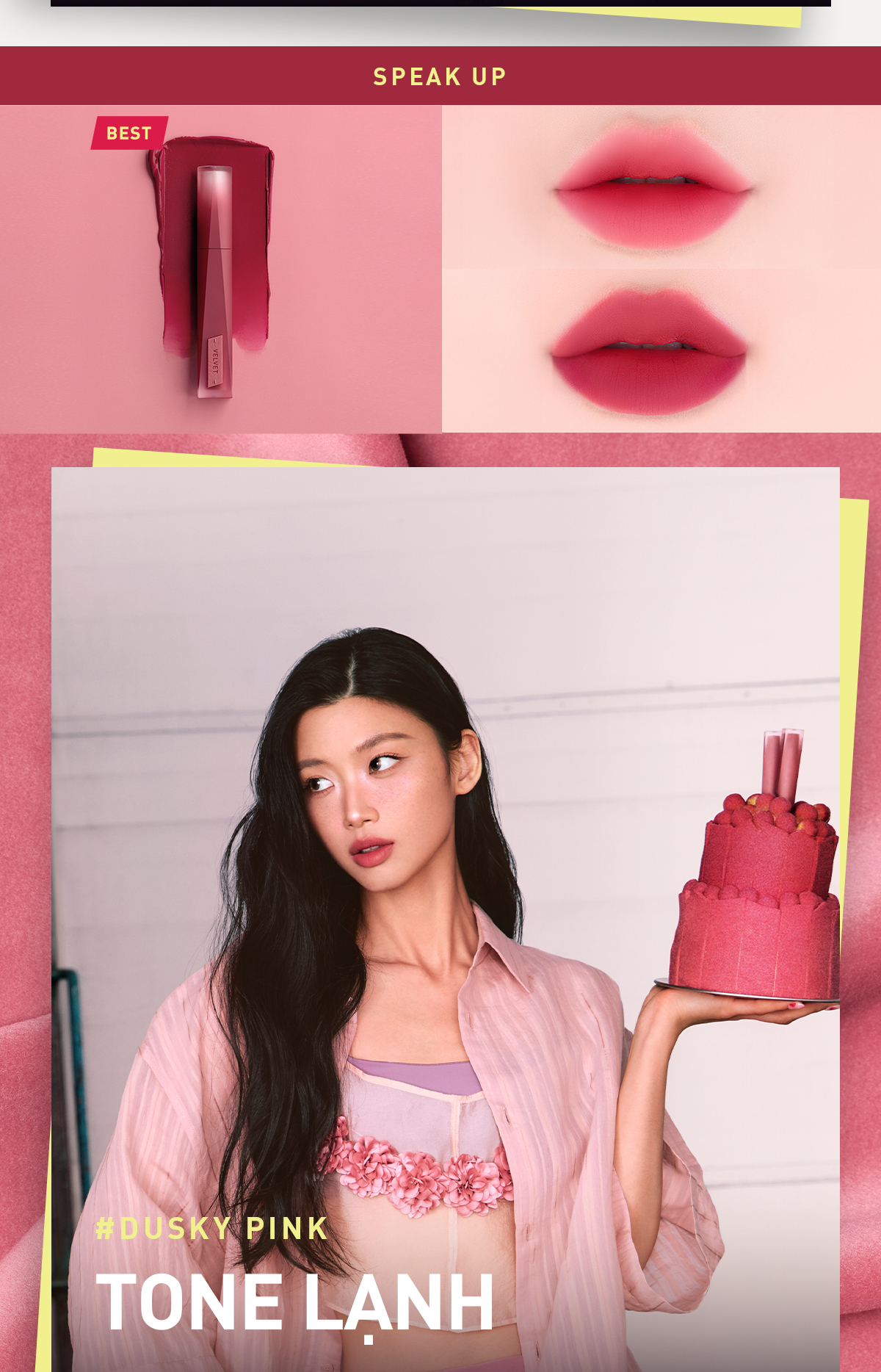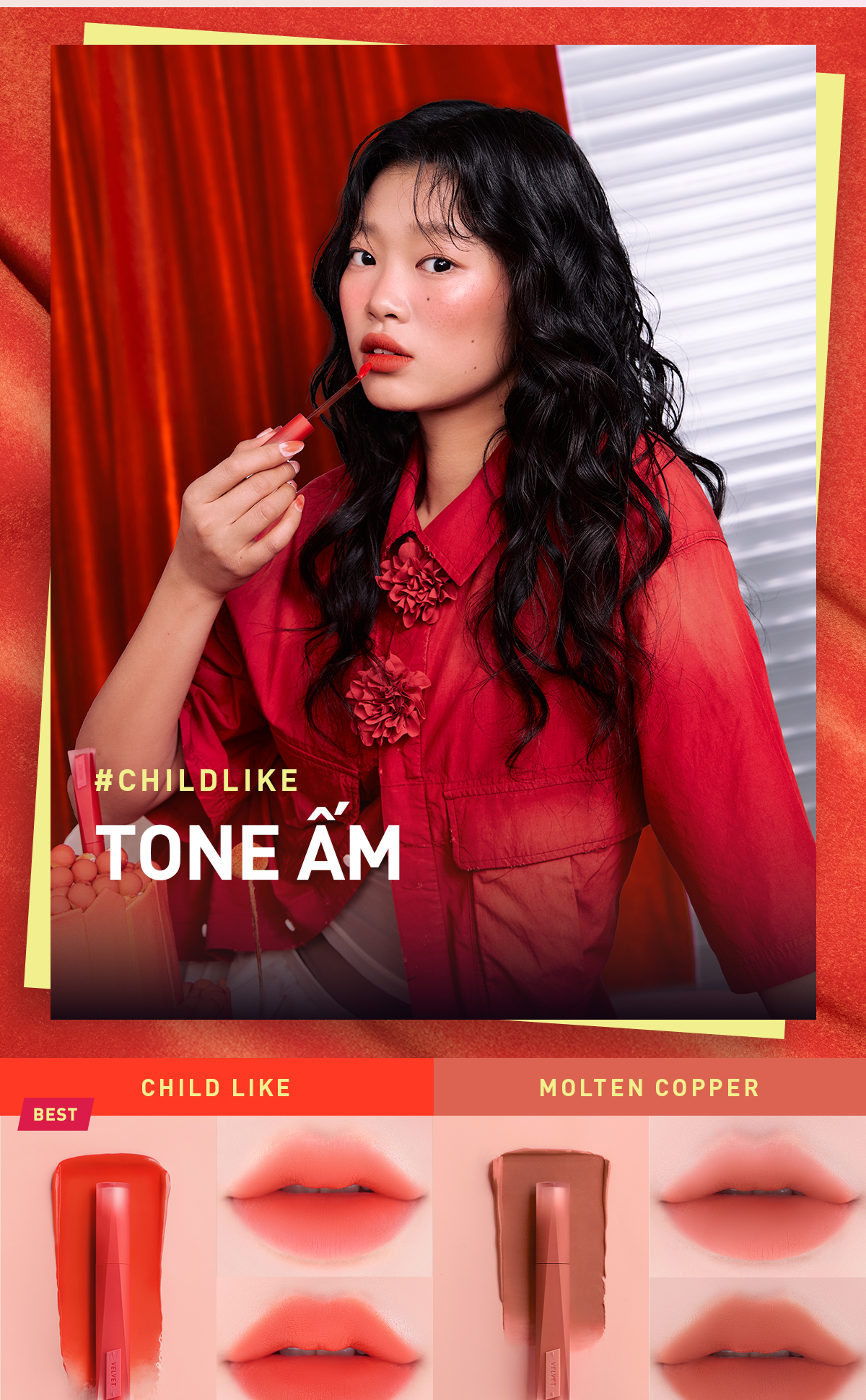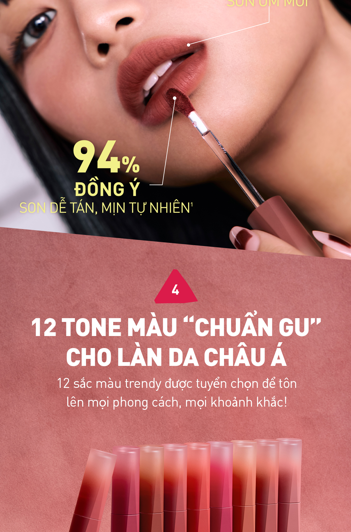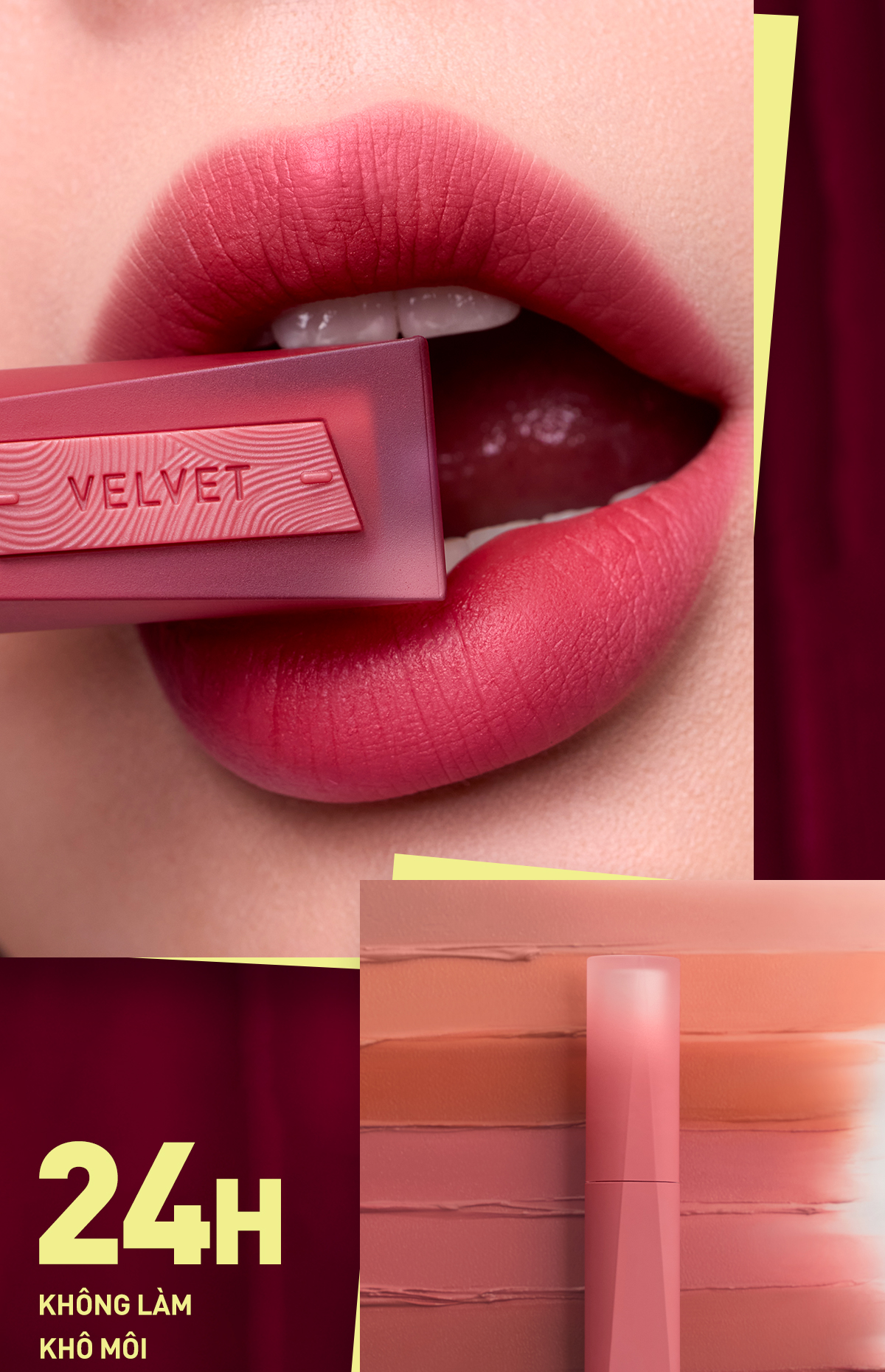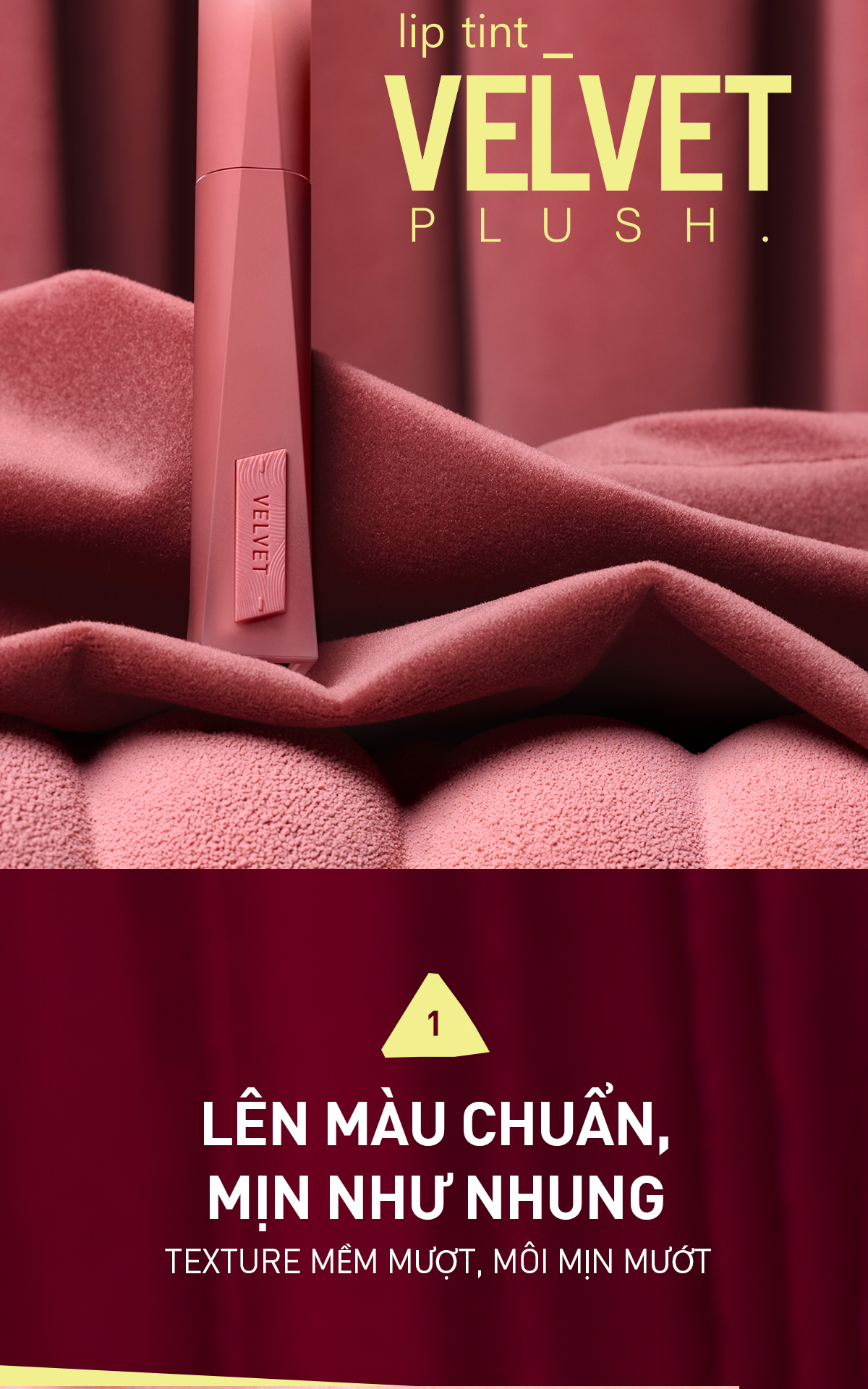 "Chạm môi với Velvet Lip Tint Plush" – chất son mịn như nhung, thiết kế phá cách cho trải nghiệm make-up nâng tầm. Đầu cọ ôm sát môi, lướt nhẹ và tán đều, viền môi tự nhiên chuẩn xác. Bảng màu trendy từ những màu sử dụng thường ngày đến các gam nổi bật, cho bạn tự do khẳng định dấu ấn riêng.