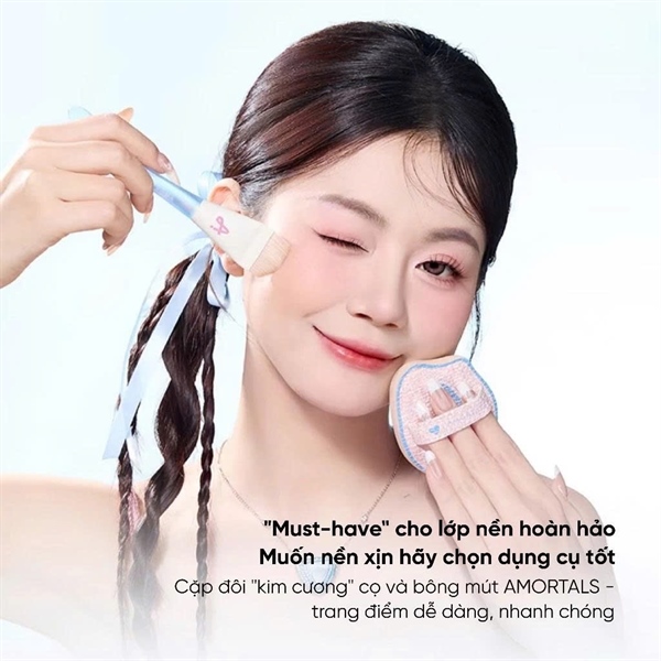 Tên sản phẩm: Cọ Tán Nền Tiên Cá AMORTALS Đầu Vát Mềm, Tán Nền Mượt Mà Không Vệt, Che Lỗ Chân Lông Hiệu Quả