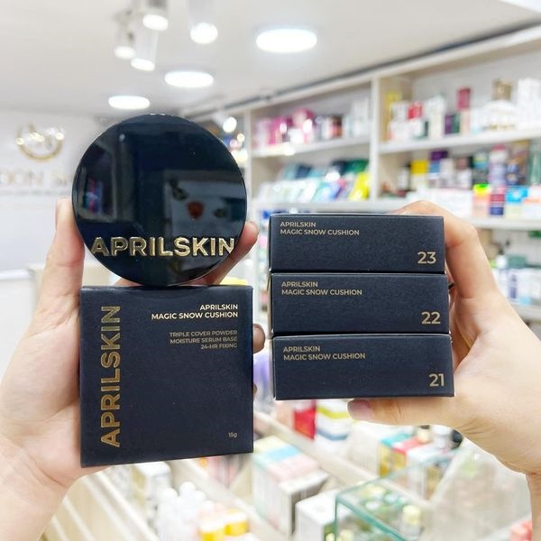 Hiện Tại Phấn Nước APRIL SKIN Magic Snow Cushion Triple Cover có 3 tone tại Mỹ Phẩm Moon Shop