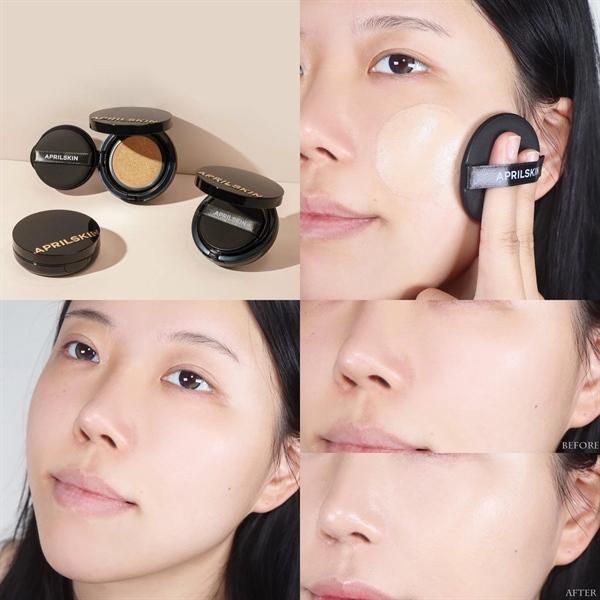 Phấn Nước APRIL SKIN Magic Snow Cushion Triple Cover có khản năng tạo cho lớp nền vẻ căng bóng và ẩm mượt cho lớp bên ngoài ( Loại vỏ trắng là da khô, vỏ đen là dành cho dầu)