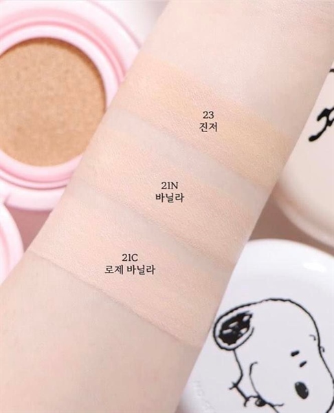 Ⓢⓝⓞⓞⓟⓨ[ ] ̂́ ̛̛́ Xuất xứ: Hàn Quốc ——————————- Moon có 3 tone: 21C Snoopy: trắng hồng21N Charlie: tự nhiên23N Sally: da ngăm Kéo dài 48 giờ với sự mềm mại vượt trội. Độ bền màu lâu, tăng hiệu quá bám màu, không bị dính khi đeo khẩu trang. Kiềm dầu, che phủ các khuyết điểm lỗ chân lông. Chứa gấp đôi hàm lượng nước trà xanh và panthenon cấp ẩm Chỉ số chống nắng SPF 35 PA+++ giúp bảo vệ da khỏi tia UV.