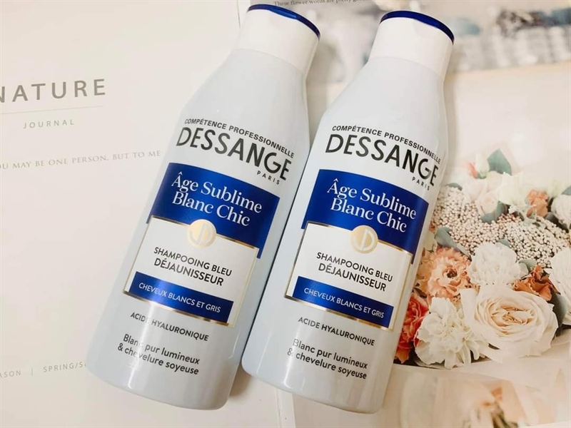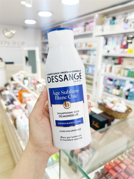Dầu gội DESSANGE Age Sublime Blanc Chic để trung hòa phản xạ màu của tóc và làm hồi sinh sự bóng mượt , chắc khoẻ của mái tóc bị bạc sớm hoặc chớm bạc