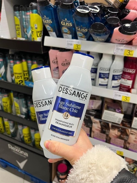 Được thử nghiệm tại Trung tâm nghiên cứu tóc Dessange và được sử dụng hàng ngày trong các tiệm, dầu gội Age Sublime Blanc Chic trả lại mái tóc đen óng ả Với công thức được làm từ axit hyaluronic sẽ trung hoà được phản xạ màu của mái tóc ! Mái tóc trở nên đen mướt trở lại theo thời gian