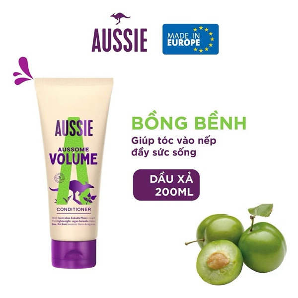 - Công thức nhẹ nhàng không để lại cặn, dễ dàng xả sạch ngay lập tức; đặc biệt KHÔNG chứa Paraben và KHÔNG silicon. AUSSOME VOLUME giúp tăng độ phồng tự nhiên từ gốc nhờ chiết xuất quả mận Kakadu giàu vitamin C. Công thức còn kết hợp với trái cây thiên nhiên và các thành phần cấp ẩm giúp bảovệ tóc khỏi tác nhân môi trường, giữ mái tóc luôn đầy sức sống.