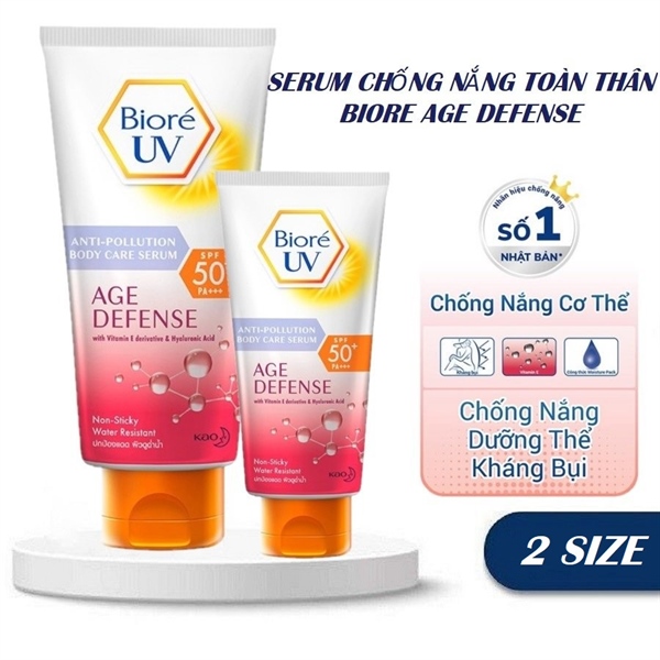 - Bioré UV Anti-Pollution Body Care Serum Extra Moist giúp bảo vệ da tốt với chỉ số chống nắng SPS 50+/PA+++ cùng công thức đặc biệt có khả năng chống nước, mồ hôi hiệu quả.