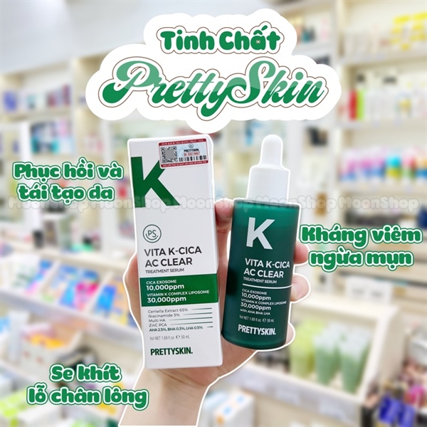 – Tinh chất Pretty Skin Vita K-Cica AC Clear Treatment Serum cấp ẩm, cấp nước, và làm dịu da.